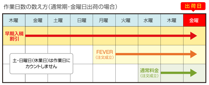 ※必要な作業日数をいただければ、どの曜日のご注文でもご利用可能です。(通常期)